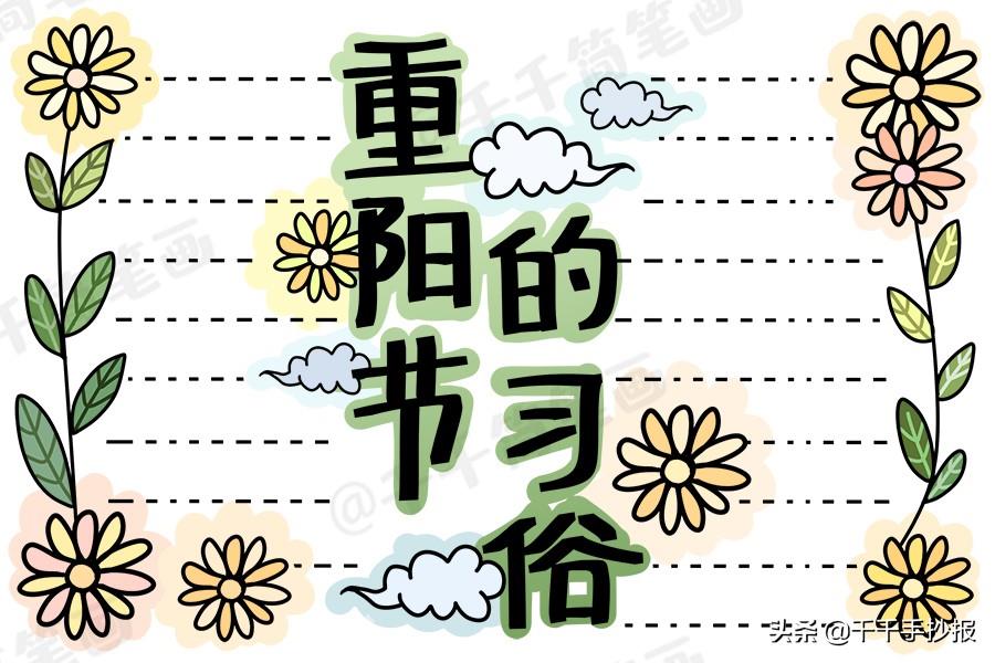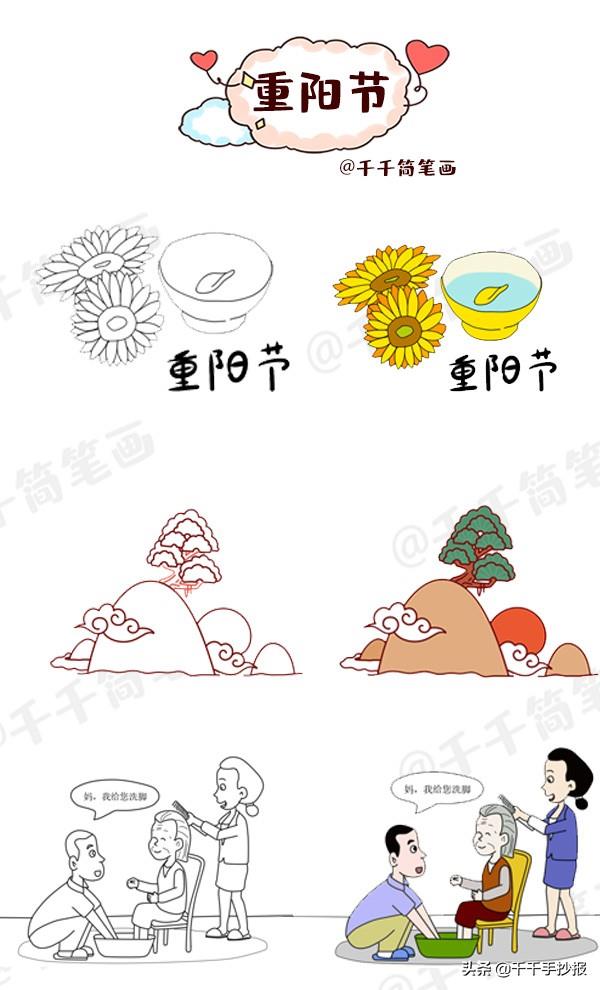重阳节简笔画,赏菊、插茱萸、登高望远是重阳节的习俗