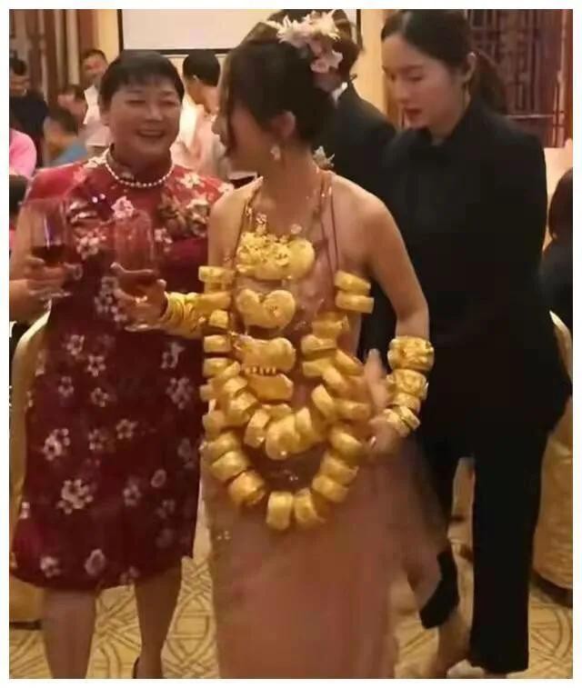 但事实上,有广东的网友表示在当地这种情况并不罕见,一般都是十来只金饰,经济好的甚至有五六十只金饰,新人结婚家里的亲戚长辈都会送上一些黄金饰品,猪代表生活幸福、多子多福,手镯表示圆满,金子寓意永恒,新娘把金饰戴在身上也是承载祝福以及对亲戚的感谢,是基本的礼貌,如果不带出来别人或许还会觉得不礼貌对他们有意见。至于新娘的着装,从视频中也能看出宴会厅里并不冷,结婚本就是大喜的日子,新娘开心就好,婆婆都没说什么,大家也没必要多加议论。