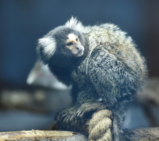 红山动物园新设的狨猴馆就在袋鼠馆附近。记者看到,普通狨猴比成年人巴掌大一些,体毛呈灰棕色。它精致的小V脸,大双眼皮,眼睛就像戴了咖色的美瞳一样,水汪汪的。耳边还有一簇白色长发,就像戴了大大的、毛绒绒的耳罩一般,时尚感爆棚。