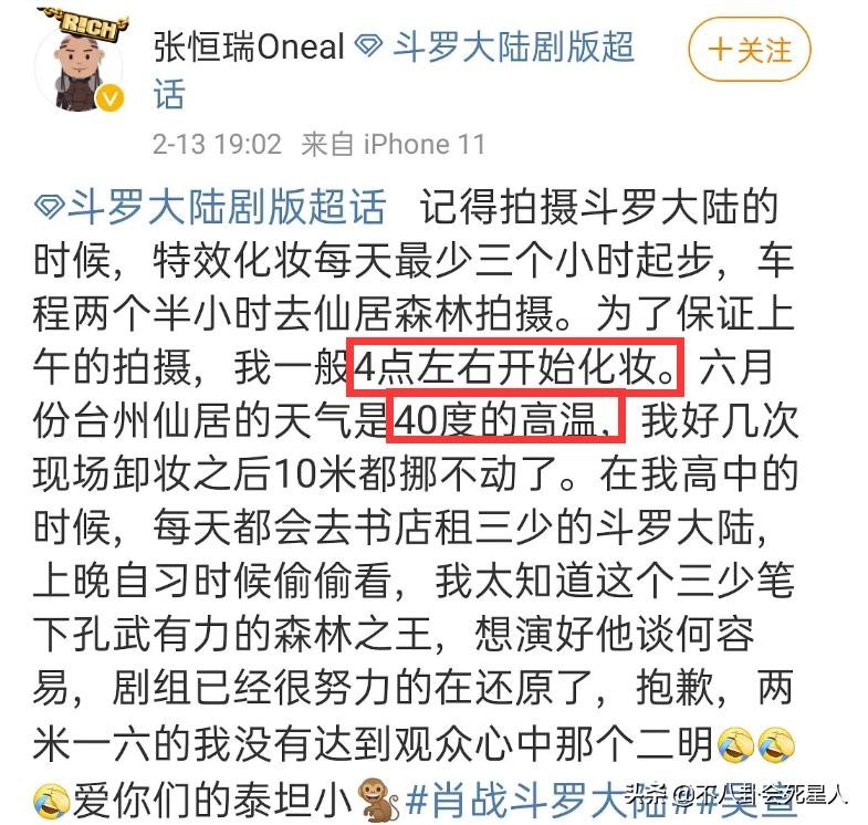 拍摄时他每天4点起床,画3个小时的特效妆,穿得严实密缝的在40度片场演戏。虽然镜头对他们的演技要求不高,但是他们的演艺工作也比常人更艰苦。