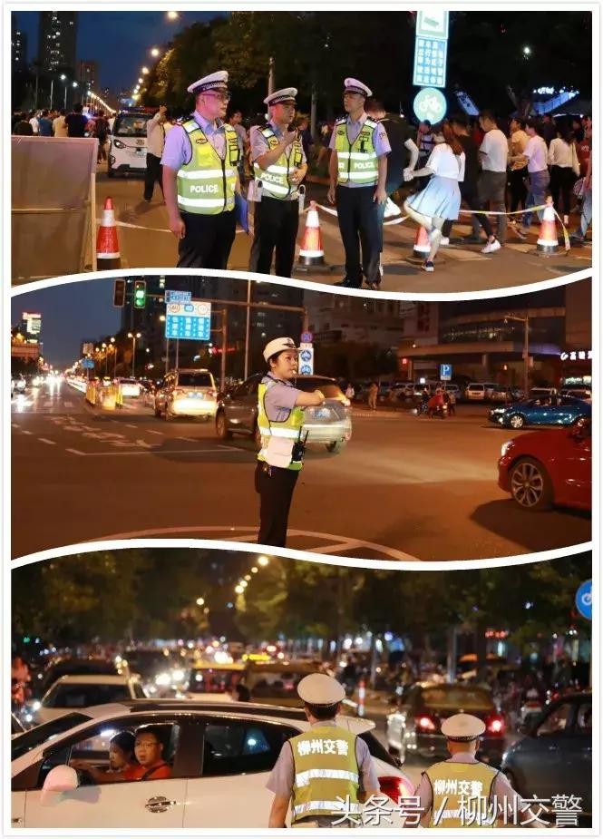 当晚,柳州市公安局交警支队各大队共出动警力200余人,警车40余辆,对会场周边道路加强巡逻、疏导,并利用智能交通系统,强化对重点路段的流量监管控制,最大程度提高道路通行率,高峰时段平均每分钟疏导超过500人。