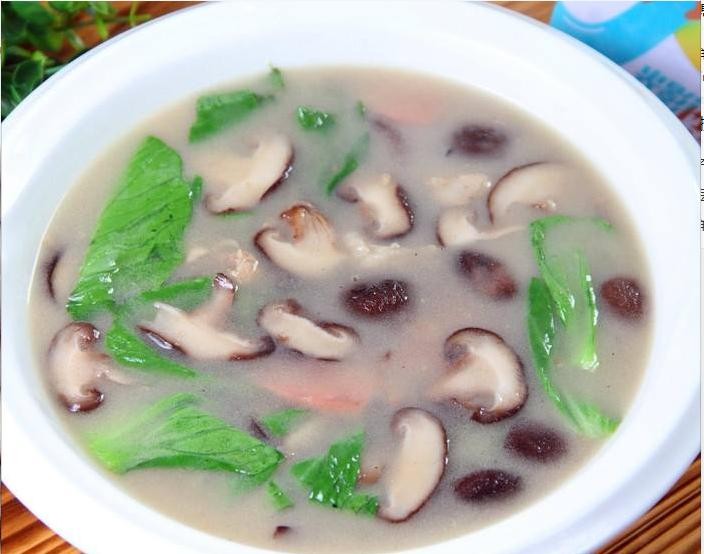 6、出锅之前放入青菜,再放入一勺食盐调味即可。出锅装碗,撒上些许葱花点缀增香,一道清淡鲜美的三鲜汤就做好啦!