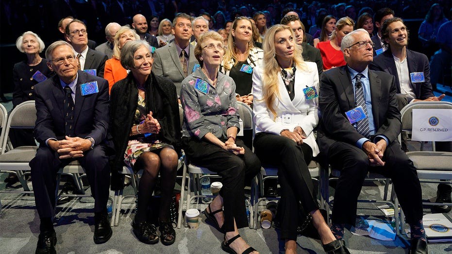 (左-右)吉姆-沃尔顿、爱丽丝-沃尔顿、吉姆的妻子林恩-麦克纳布-沃尔顿、罗布-沃尔顿的妻子梅拉尼-洛曼-沃托