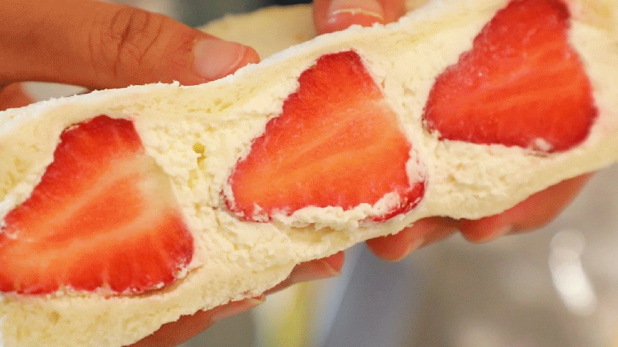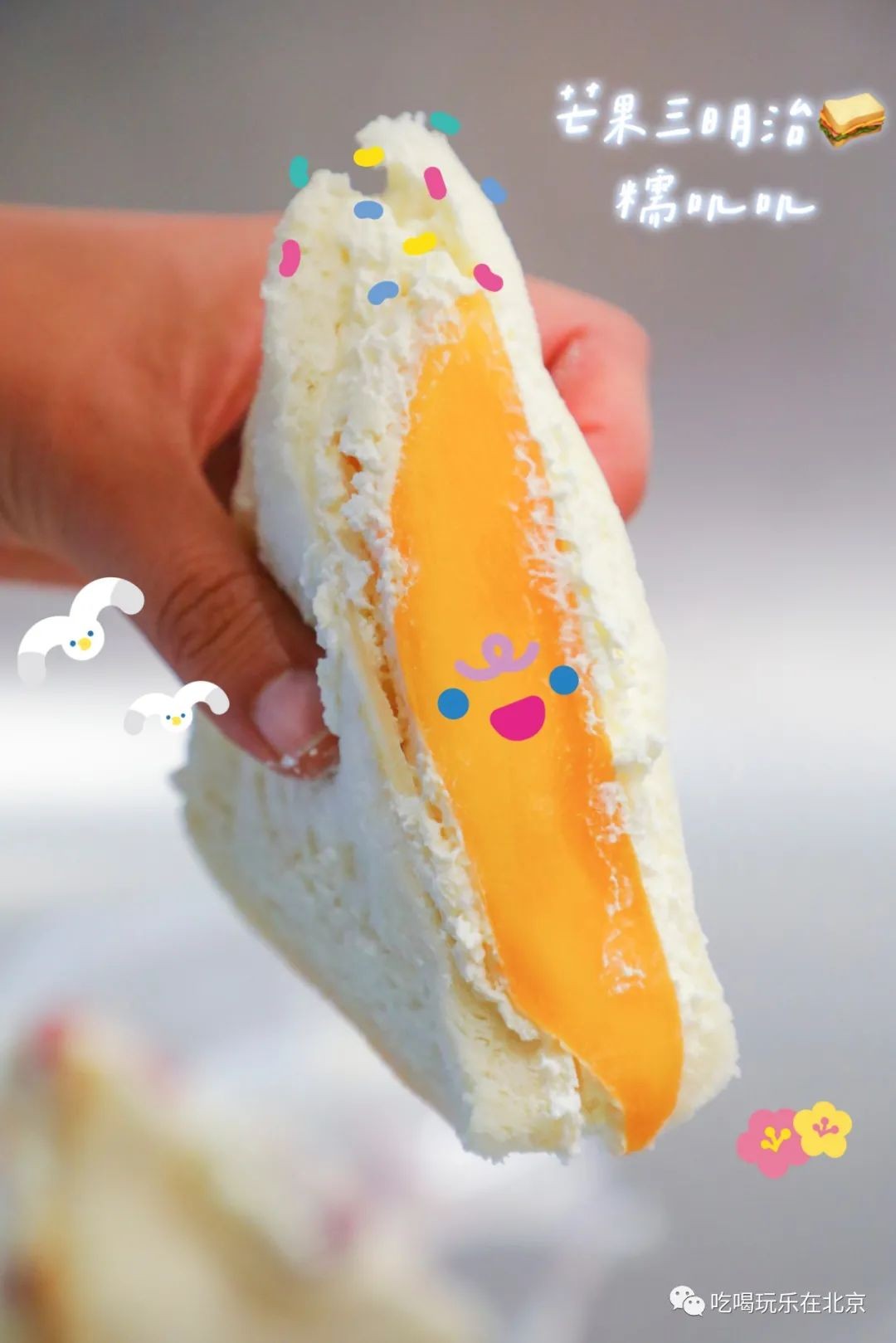 草莓酸酸甜甜,和三明治里的奶油是绝配。芒果味就是一个大芒果直接塞在三明治里,大口咬下,糯唧唧的,幸福感爆棚~
