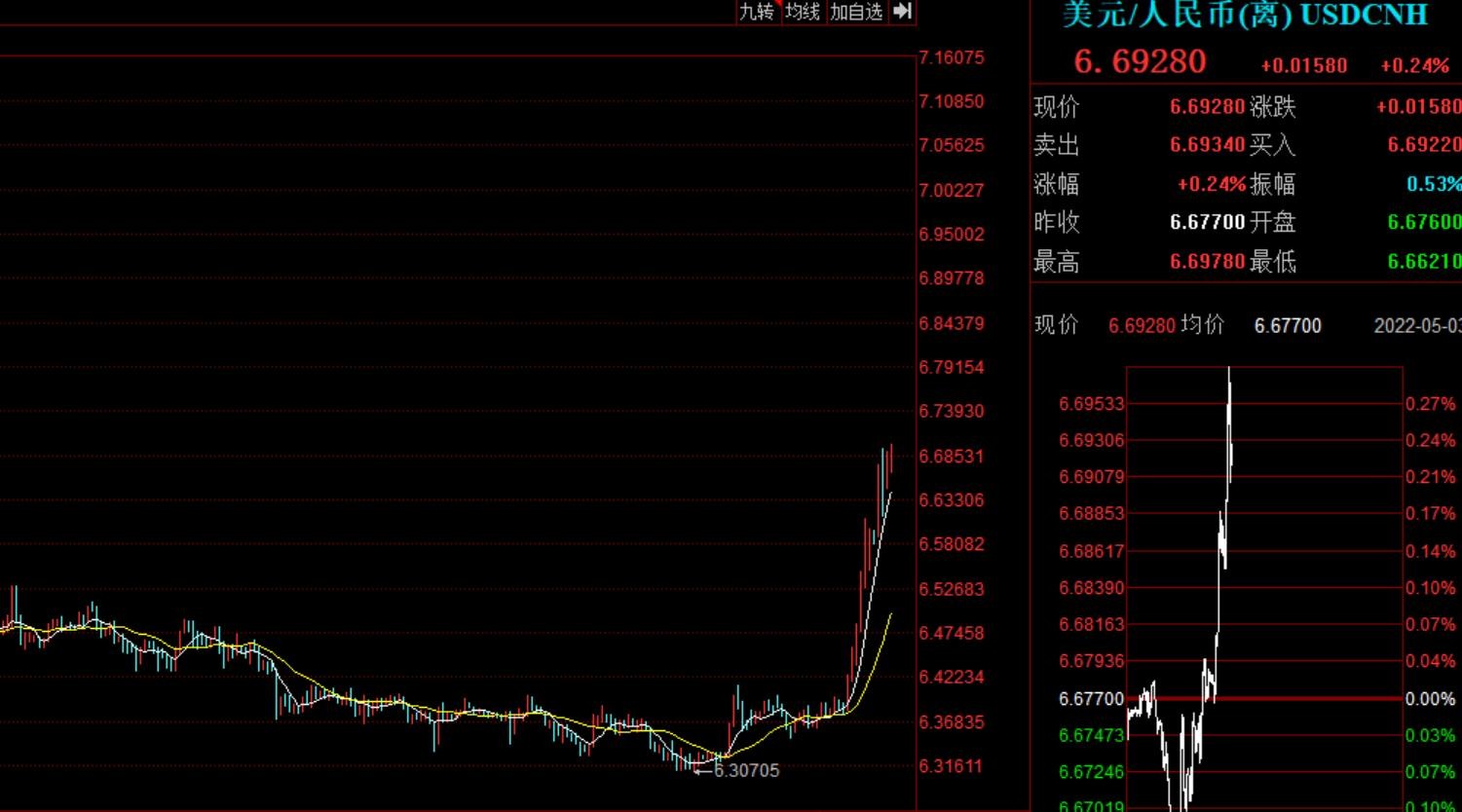 而美元价值增加了,人民币就会出现贬值,所以你会看到,最近人民币兑美元贬值得非常快。