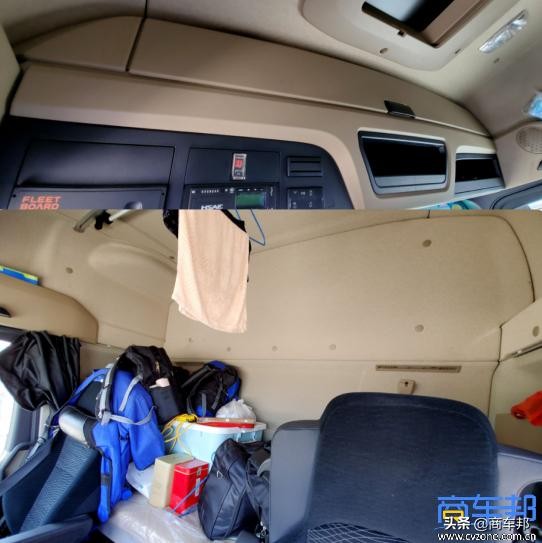 身着防护服的王师傅告诉商车邦:“我们车队有护送车,而且为了避免辐射对身体的影响,停车后我们都会下车,晚上也不会睡在车里,恰好奔驰只有一个卧铺,所以我们就在上面放杂物和生活用品。”