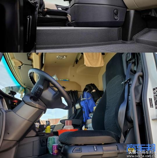 虽然是窄体凸地板驾驶室,但这款阿克托斯的空间表现比较优异。中央地板的高度约为12厘米,并且非常平整,王师傅对此给予好评:“奔驰的空间大,而且自动挡没有档把,热水壶、垃圾桶都可以放在中间;公司里的另一款国产车就不如它,挡把碍事而且中间鼓包又大,暖瓶只能放在副驾位置,押运员在车上活动不开。”