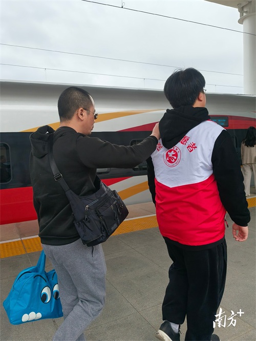 黄林泽帮助盲人旅客。