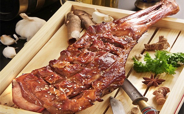 第四步:将调好的酱汁倒入羊腿中,腌制24小时,完全入味即可。