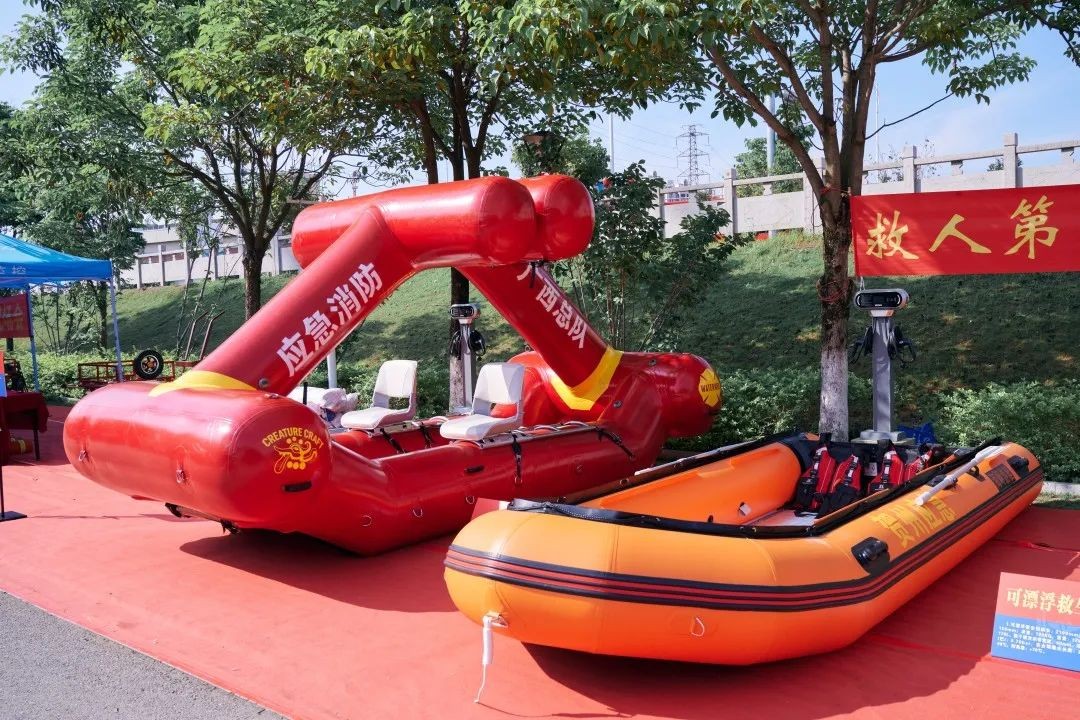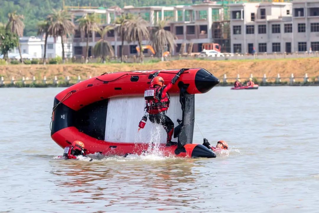 演练期间,广西消防救援总队在立足传统的岸上抛绳救援、舟艇救援、绳索救援等基础上,充分发挥了大型救援无人机、水上救援机器人和水陆两栖全地形车等先进装备优势,开展了无人机实时侦察搜索、舟艇组装、舟艇“O”型救援、舟艇驾驶技术、翻舟自救、舟艇活饵救援等17个实战科目。