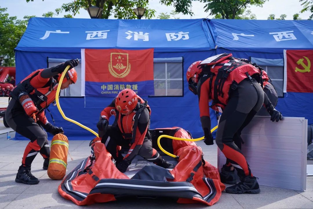 演练期间,全体消防救援人员精神饱满、行动迅速、协调合作、紧张有序,合力完成各项演练科目,全面检验了桂北协作区协同作战能力及防汛应急准备情况。