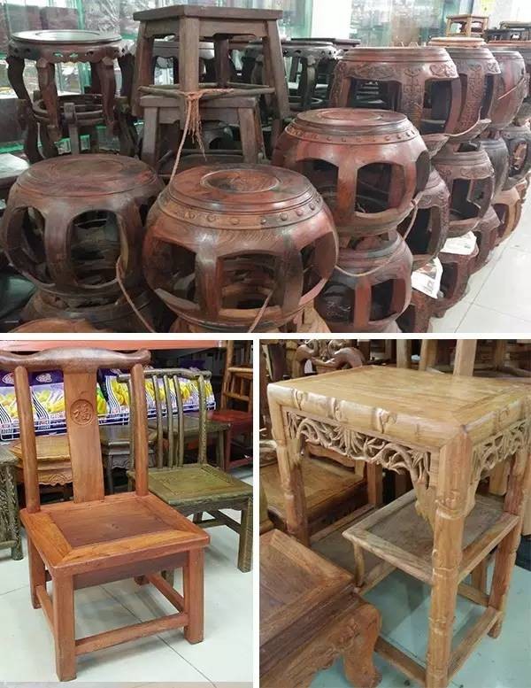 酸枝、草花梨、鸡翅木等小件的红木家具。草花梨和鸡翅木做的灯笼凳、官帽椅,坐起来非常舒适,价格在150-200元,适合家里老人小孩或者换鞋用。酸枝的小件家具则要贵些。