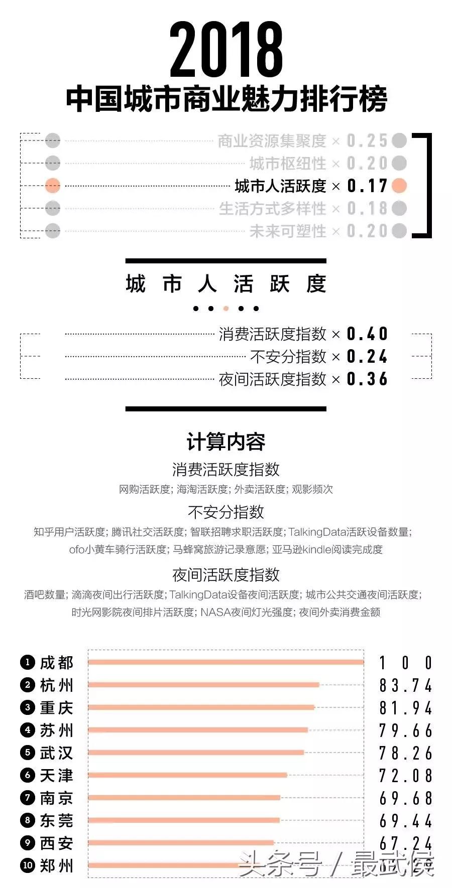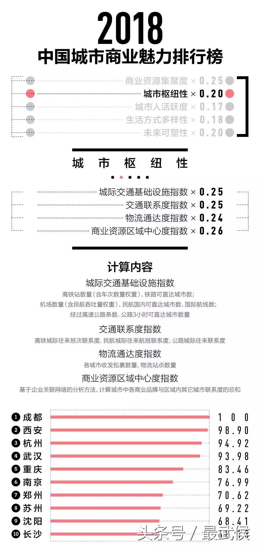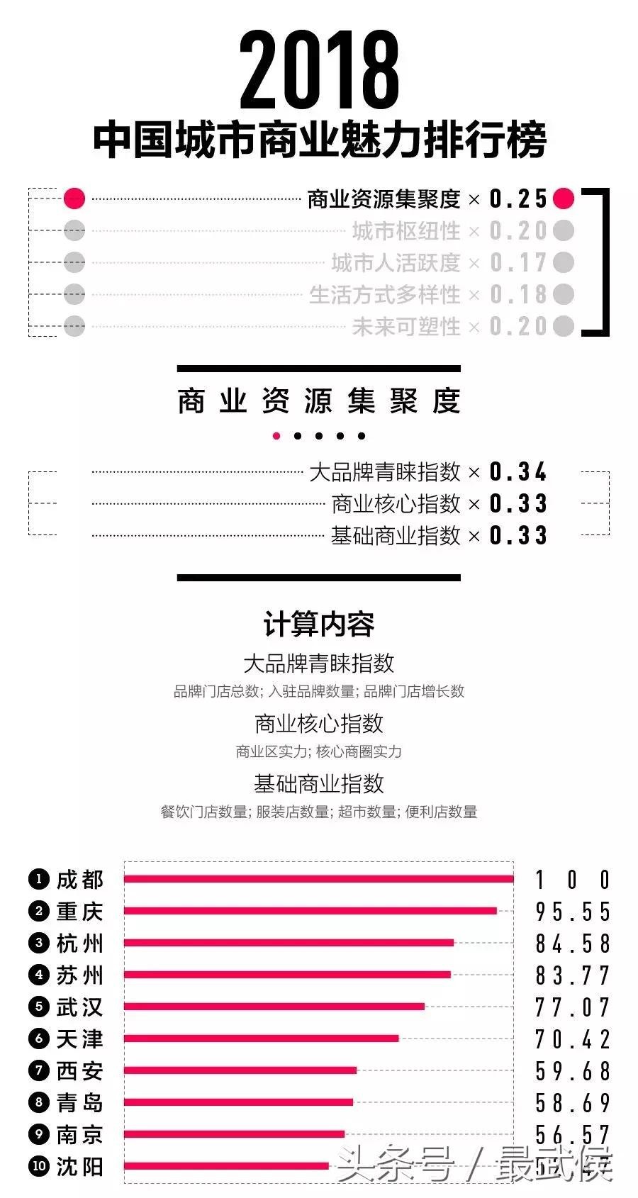 排行榜沿用了上一年的五大指标——商业资源集聚度、城市枢纽性、城市人活跃度、生活方式多样性、未来可塑性