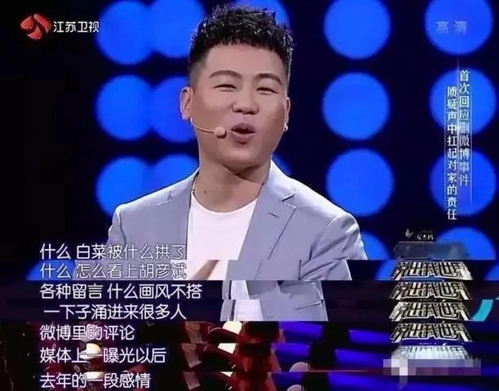 爱情曝光后,胡彦斌被粉丝围攻,说白菜被猪拱了,他的外貌与私生活均遭受了全方面的攻击。