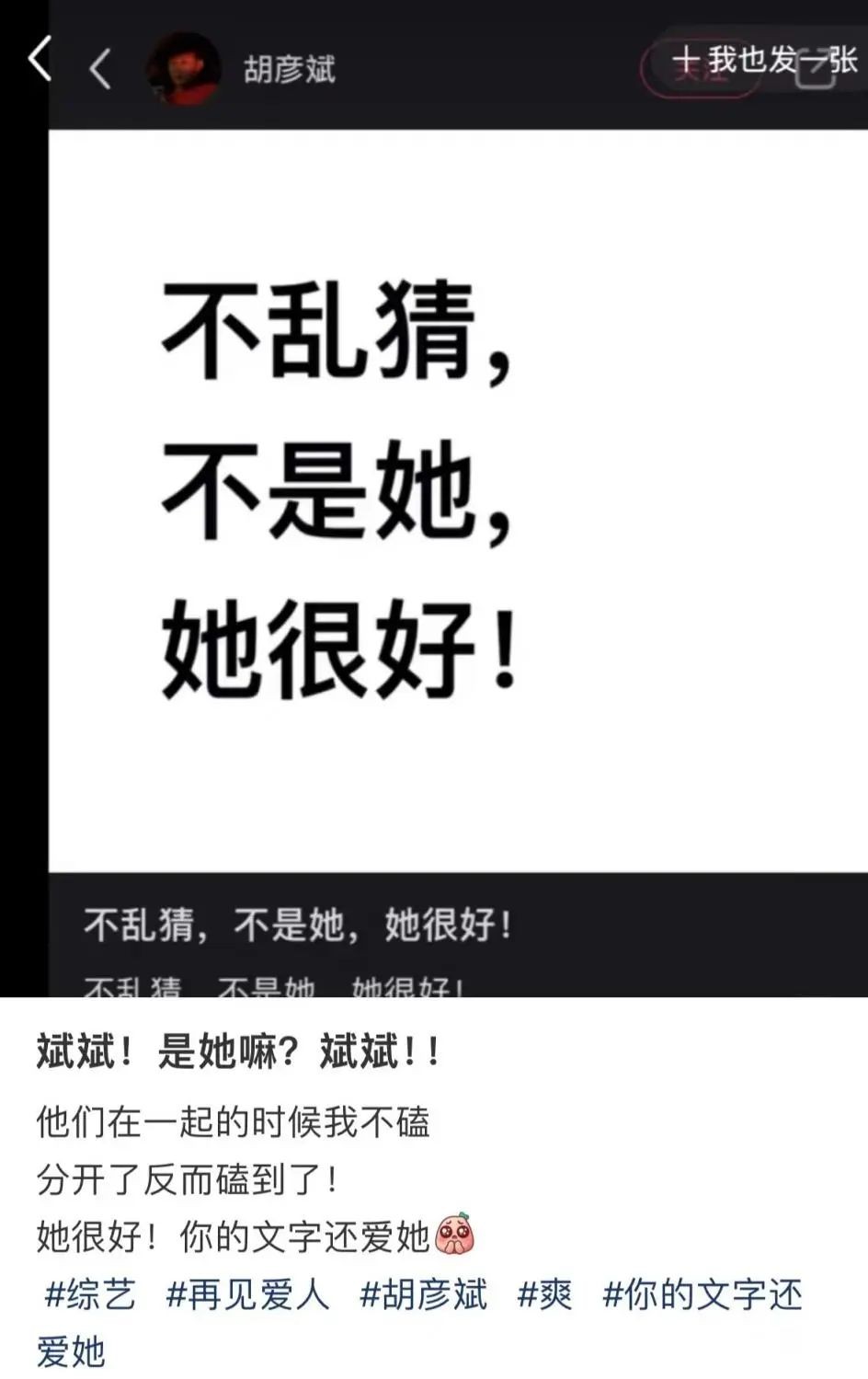 虽然发完后秒删,但网友们还是表示,“磕到了,你的文字还爱她。”