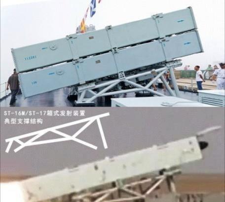 056舰在舯部交叉安装了两座双联反舰导弹发射器,不但可以发射反舰导弹,也能发射火箭助推鱼雷,也就是通常所说的反潜导弹。