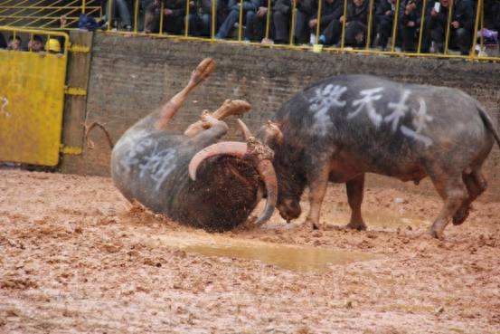 身价几次暴涨,最终102万元易主一个“云南牛王”,一个“贵州最抵打的” 价值9万元的凯里18号,两牛都战功累累。第一次交锋,两牛在冲刺中猛烈碰撞,瞬间,凯里18号翻倒在地当场毙命。这次比赛,“擎天柱”以不败的战绩斩获了贵州省西部首届民族职业联赛重量级的总冠军,捍卫了中国西部牛王的“霸主”地位。比赛结束后,有贵州的斗牛爱好者出价36万元,但石有平始终没有出手。