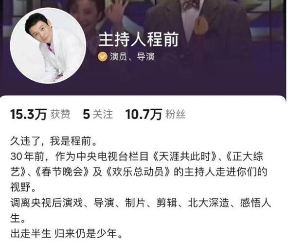 再往后就是2024年3月30日,程前在短视频直播平台迎来了自己的首秀,引发了广大网友的热烈关注和讨论。