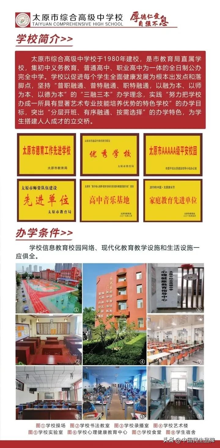 太原市综合高级中学校于1980年建校,是市教育局直属学校,集初中义务教育、普通高中、职业高中为一体的全日制公办完全中学。