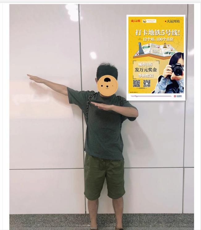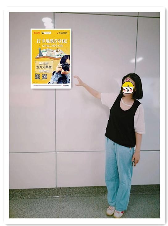 【步骤一】选取地铁五号线12个站点中的任意一个站点(车站出入口),找到以下活动海报。日历君一共留下了100个点位哦~