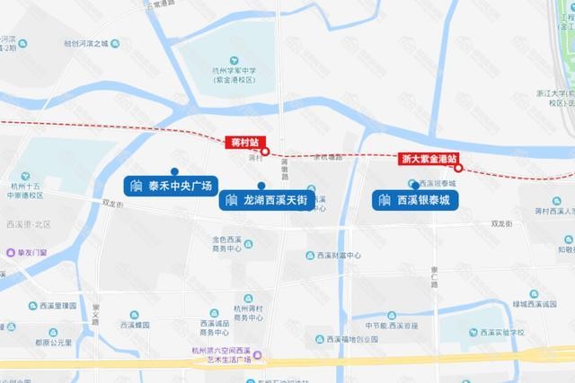 浙大紫金港站靠近浙江大学紫金港校区。百年名校的新校区,建筑独特大气,风景如画,春天时樱花开得很好。校史馆和科技馆展现了学校的历史和科研实力,不少家长空闲时会带孩子去转转。堕落街是著名的美食街,价格便宜,是吃货的天堂。周边商业体有西溪银泰城、西溪世纪中心等。