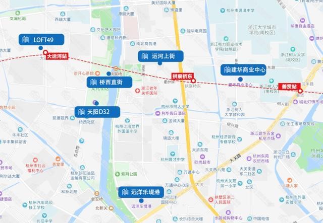 附近还有不少热门商业体。运河上街有盒马鲜生首家门店;远洋乐堤港有单向空间书店(可能是全杭州颜值最高的书店之一)、失恋博物展(全国网红打卡地);乐堤港不远是小河直街历史街区、香积寺——白居易经常拜访的千年古寺,今年仍然是热门打卡地。地铁站东的建华商业中心里,新安江奶酸菜鱼等都是网红美食。