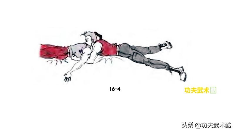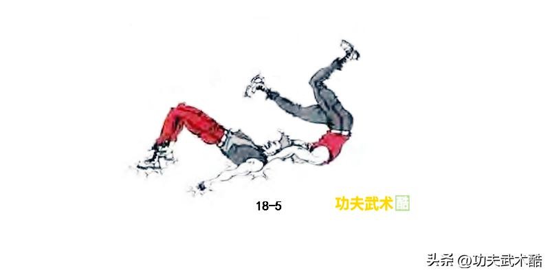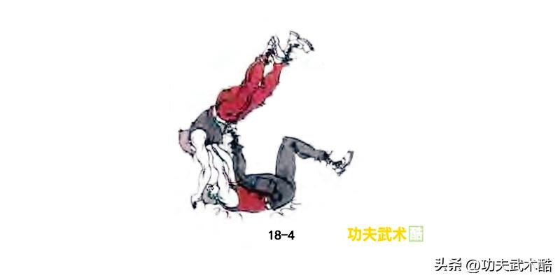 5、我方将敌方摔倒,我方双手仍须牢牢抓住敌方,并借助敌方向后摔倒的惯性,我方继续向后翻滚;