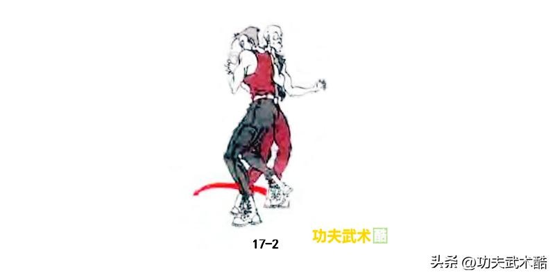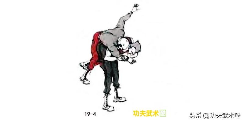 3、上动不停,我方迅速上身向右拧转并向前压,迫使敌方身体失去平衡,此处要尽量将敌方拉向自己的右臀部,使敌方悬空;