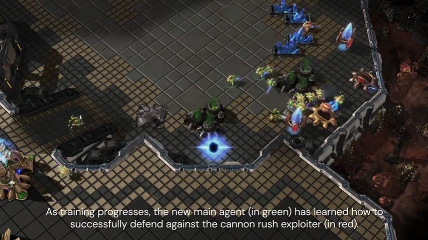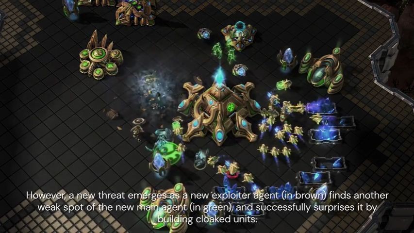 就像这样,多个智能体在相互竞争和协调合作的复杂环境中反复循环,AlphaStar变得越来越强大。