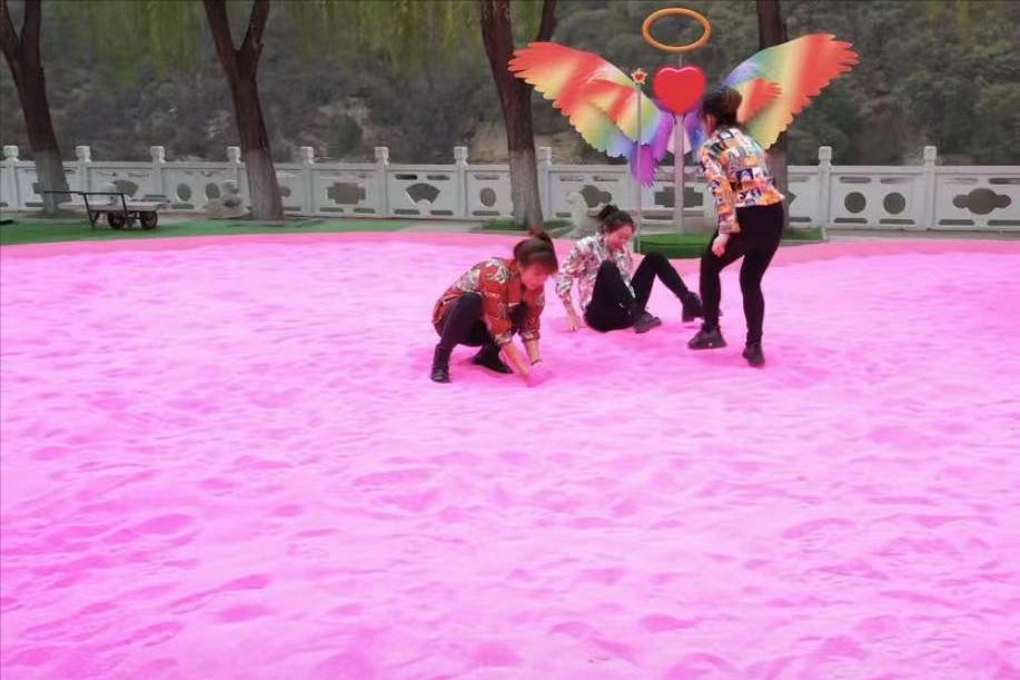 晋城九女仙湖,少女心爆棚的粉红沙滩,连空气都是甜的