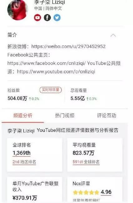 李子柒最近YouTube的粉丝已经突破了500万,这个数值可是相当之高的,尤其是YouTube是有视频播放广告分成的,调看一下她的油管收入,你会发现李子柒是真的厉害了,因为单单是油管上的收入,就可以让李子柒每年收入5000万!