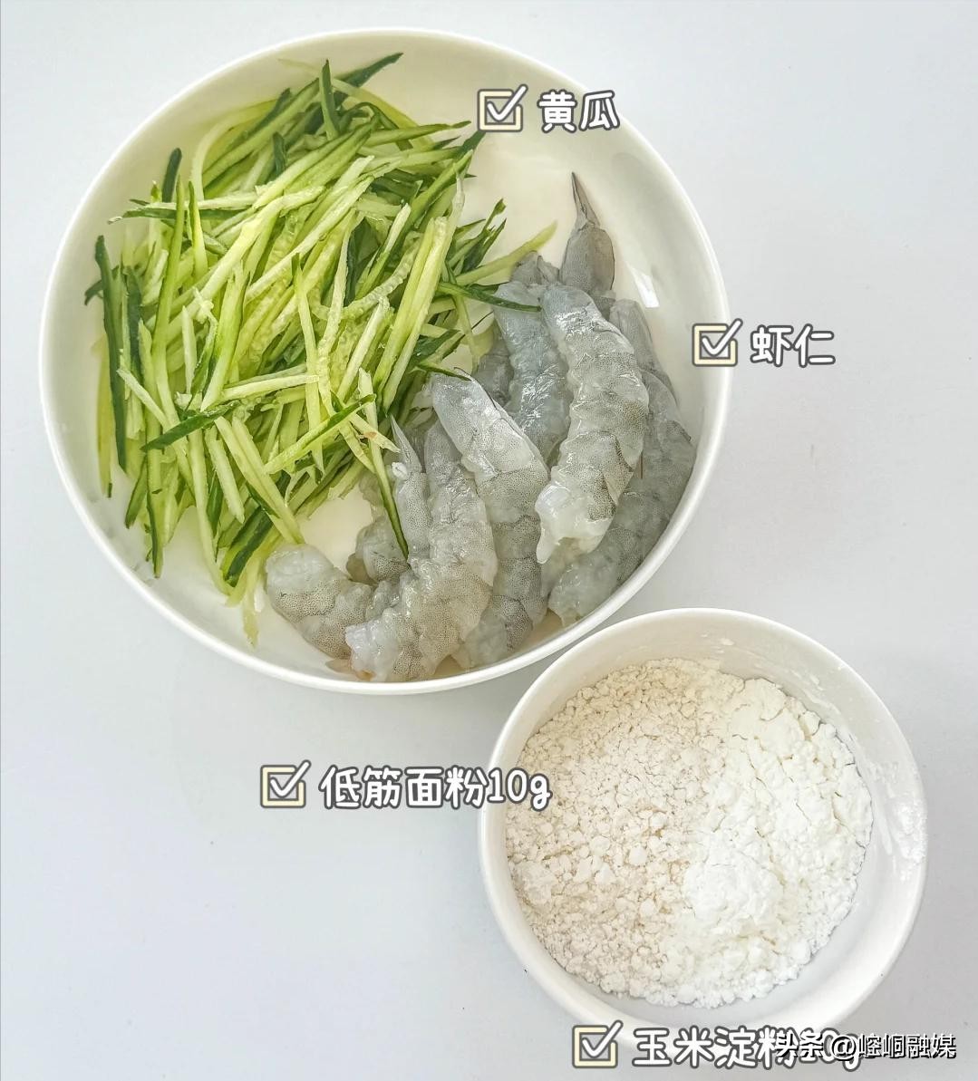 清爽的黄瓜搭配上鲜香Q弹的虾仁,一口下去真的好满足,可以搭配着番茄酱一起吃哦