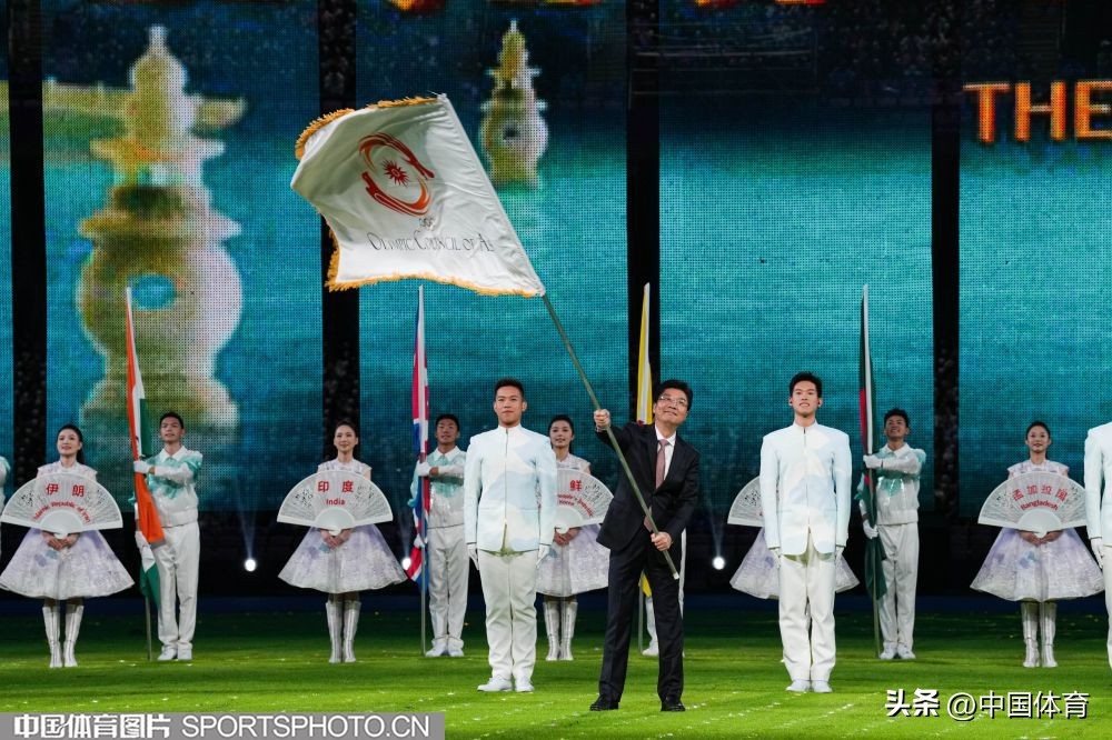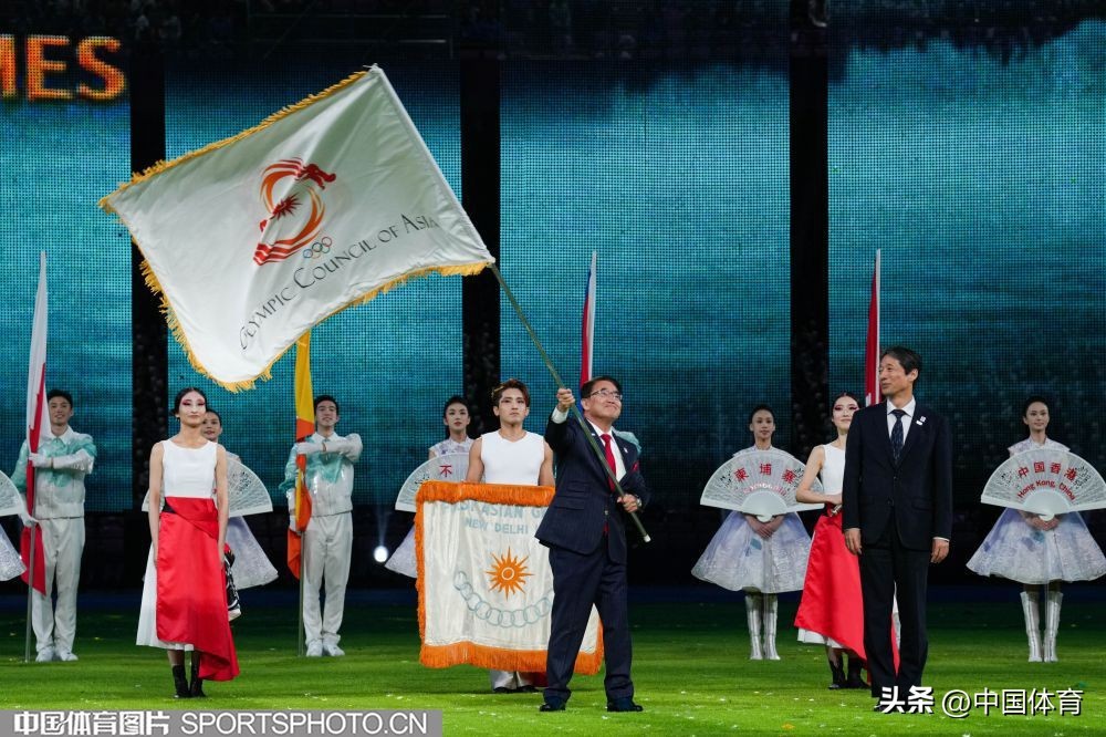 下届亚运会主办城市代表,名古屋副市长中田英雄挥动亚奥理事会会旗