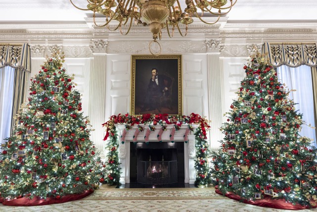 白宫工作人员告诉新闻媒体,白宫餐厅的主题是“家庭的礼物”(gift of family),包括人们出生、选择和创造的家庭。为了呼应这个主题,房间里的圣诞树上装饰着许多前第一家庭的照片。
