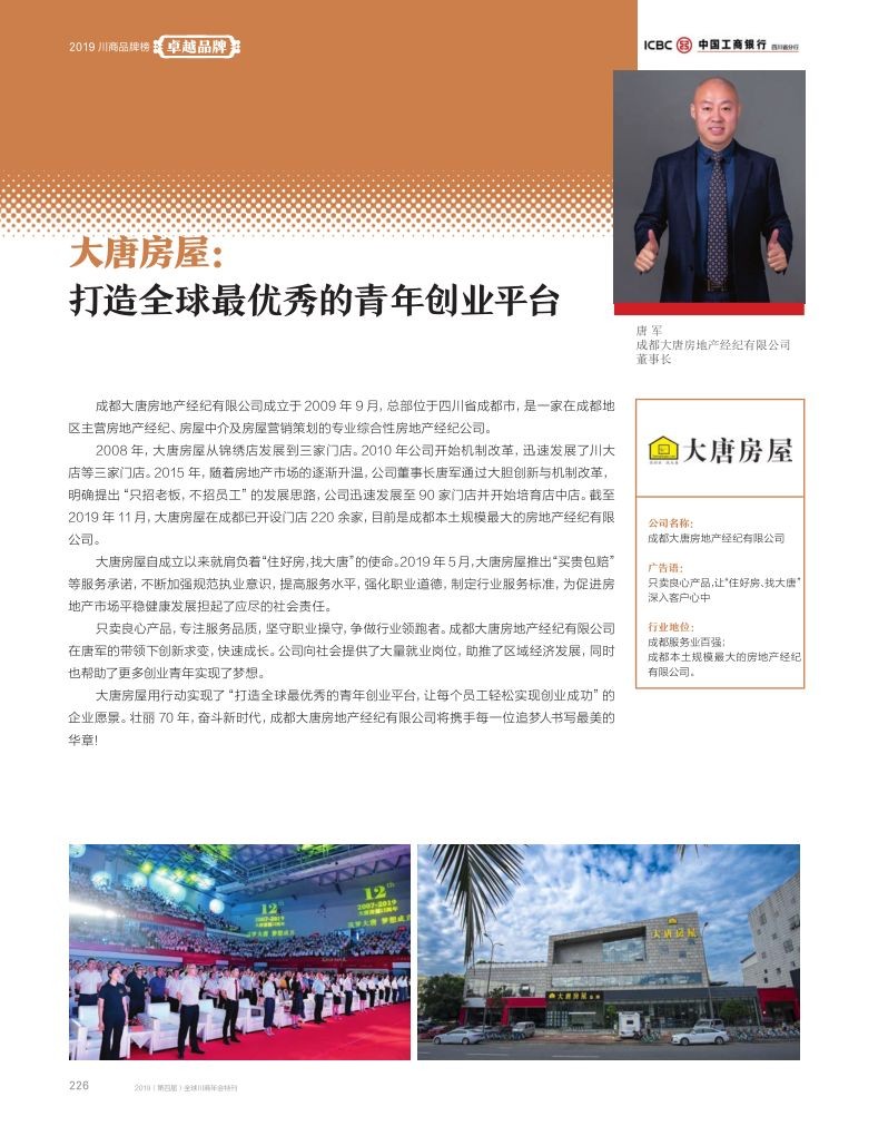 大唐房屋:打造全球最优秀的青年创业平台丨2019川商品牌榜·卓越品牌