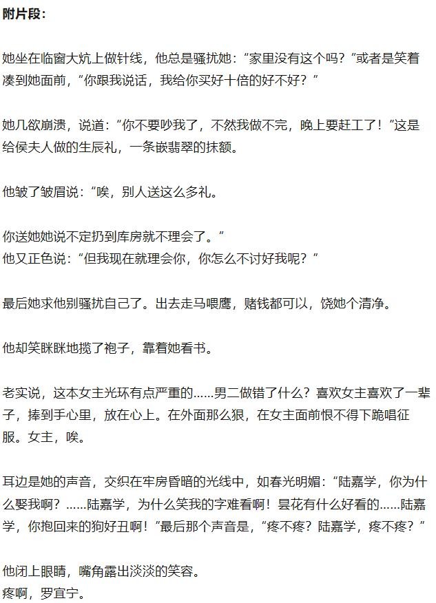 ps:这本书有个安慰的是,番外有陆嘉学找到女主,然后一起快乐生活的结局。