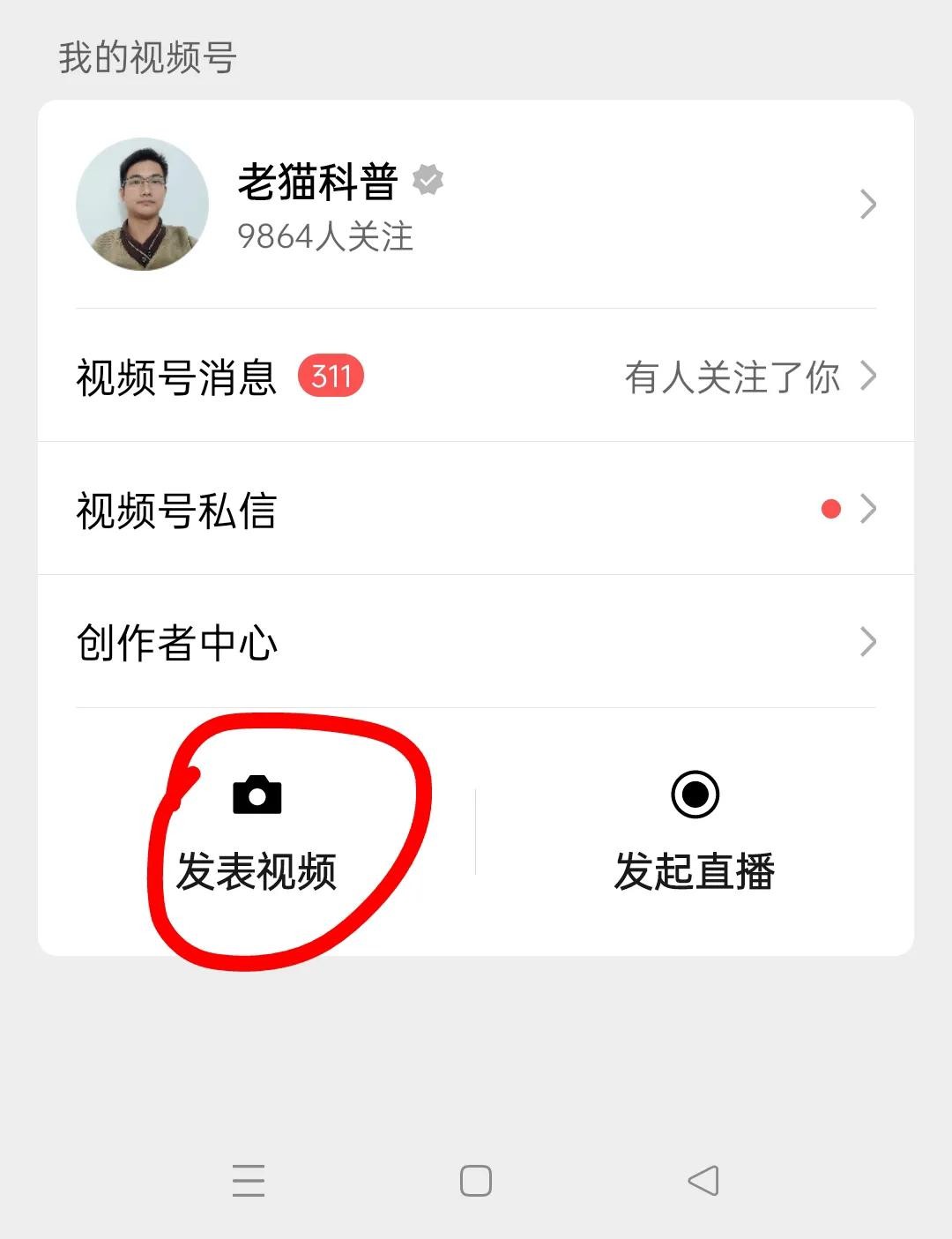 然后选择发表视频,(如上图所示)