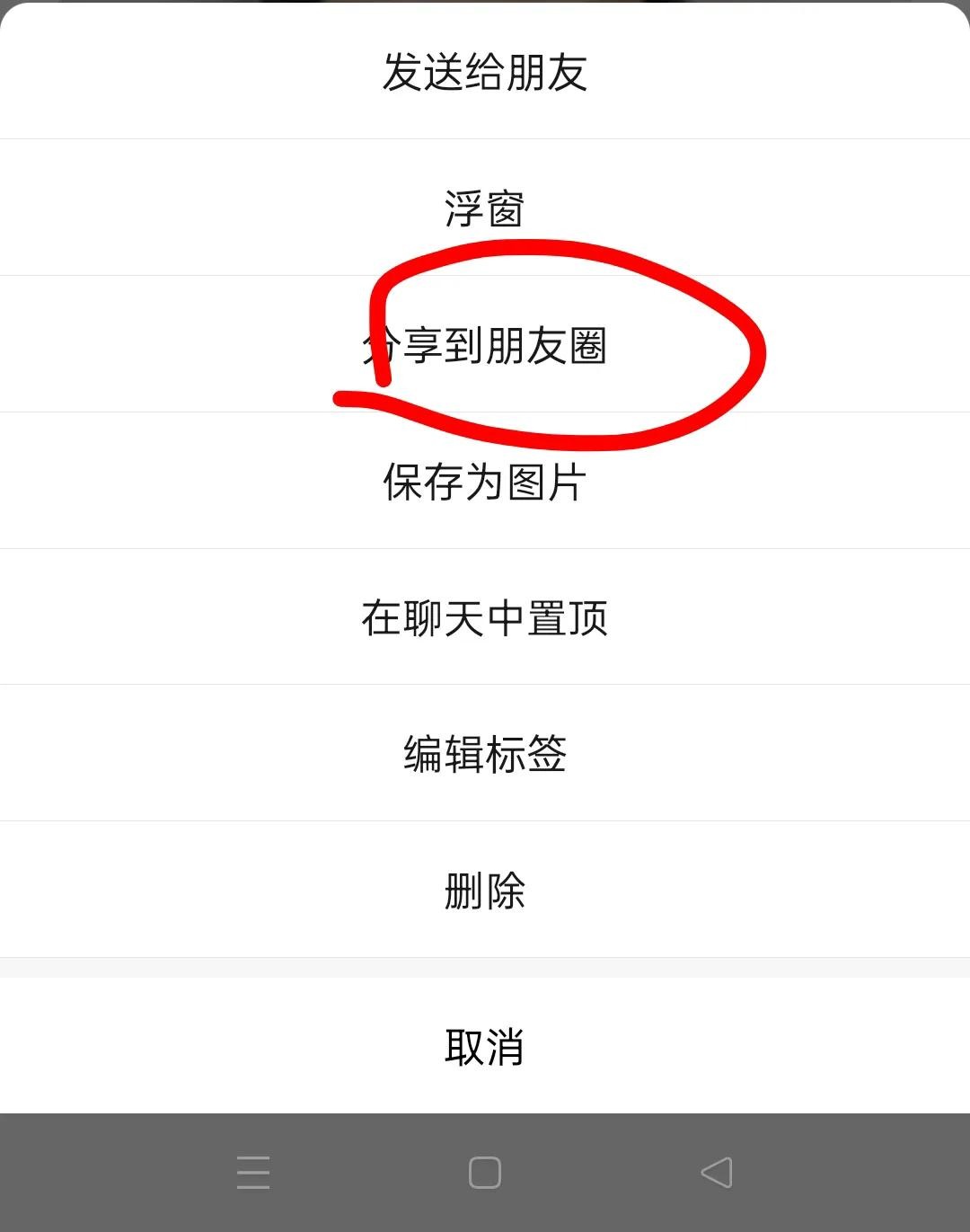 接着选择分享到朋友圈,(如上图所示)