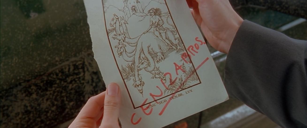 这对兄弟告诉卡索,这本书并非拥有一个作者,阿里斯蒂德·托尔基亚只是其中一个合著者。证据在于,在全书九幅插画中,只有六幅署名为阿里斯蒂德,剩下三幅插画签名为“LCF”。卡索很快思索出来“此人”的身份——路西法。