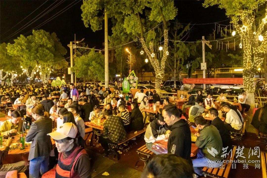 撸一把烤串,喝一口啤酒,品尝安陆特色烧烤……这里的人们笑语盈盈,享受着美食带来的满足和快乐,同时也“秀”出了古城的新“夜”态,展示出安陆经济的蓬勃发展。