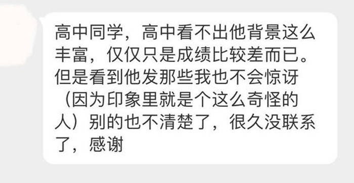 又有网友曝出了周劼饭局照片,我们看到其本人非常消瘦,还被高中同学认出并在网上留言称,高中就感觉他非常怪异,经常烟不离手。