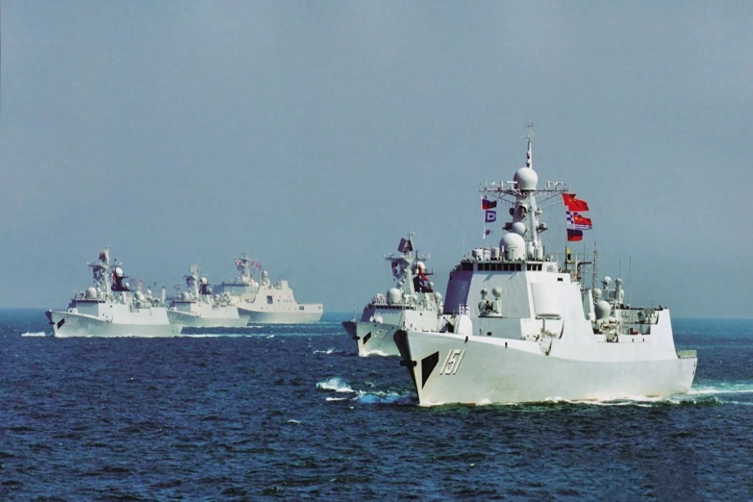 中国海军的五支舰队同时出动,包括了一支航母战斗群、护航编队、驻日本海编队、亚丁湾护航编队以及其他主力舰艇。