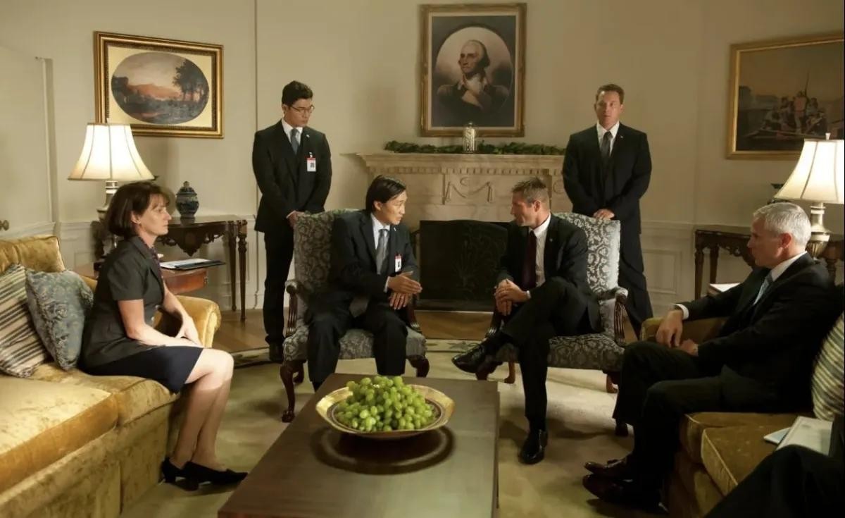 2013年美国导演安东尼.福奎阿执导的动作惊悚片。摩根.弗里曼与杰拉德.巴特勒,艾伦.艾克哈特,科尔.豪瑟,尹成植等联合主演。摩根.弗里曼片中饰议会长特鲁姆布尔。