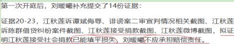 估计庭审的法官们也是啼笑皆非,并明确:“江秋莲接受社会捐款,与本案不具有关联性,不能实现刘暖曦的证明目的”。