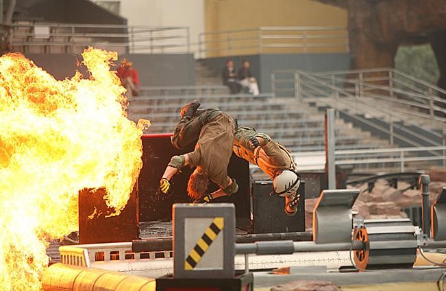 6、 世界最大水陆空特效剧场——国际特技剧场,现正上演,由全球顶尖特技导演全程监制,国际著名特技大师倾情上演,结合爆破、枪战、烟火、声光、机动设备、滑水、高空特技等多种尖端特效,出奇不意,精彩绝伦,好莱坞动作大片真实再现。