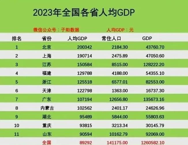 这个时候我们就要看一下人均GDP数据排名,2023年我国GDP人均排行前三的分别是北京、上海和江苏省,已经达到人民币15万到20万规模。