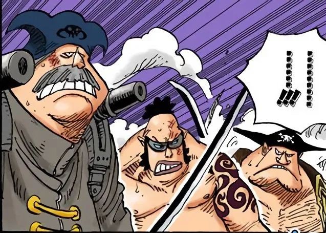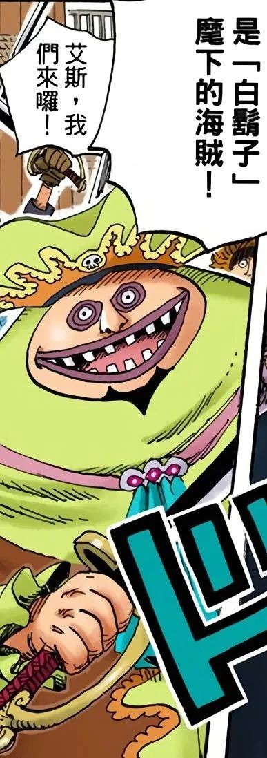 左边的克斯坎尔也是非常龙套的船长,艾斯临终前他呼喊过艾斯的名字,比起金卡稍微好点的是有个正脸。