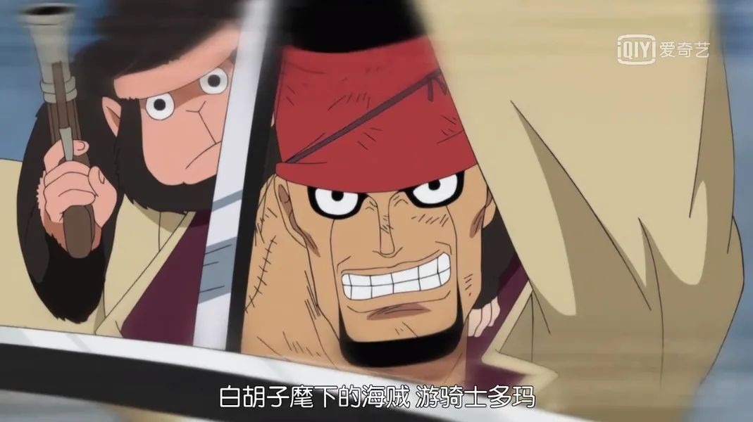 多玛外号“游骑士”,是麾下船长中很有主角相的一位,他的船队被艾斯一人击败后归顺白胡子。顶上战争中多玛多次出镜,白胡子下令掩护路飞时多玛拦住鼯鼠中将。另外多玛本身是二刀流剑客,他肩上的猴子也有一把手枪。