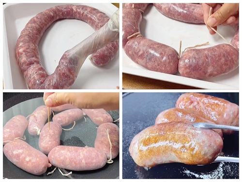 5、灌好后,分成小段系好绳结,放在通风处晾3个小时,让外皮更加紧实