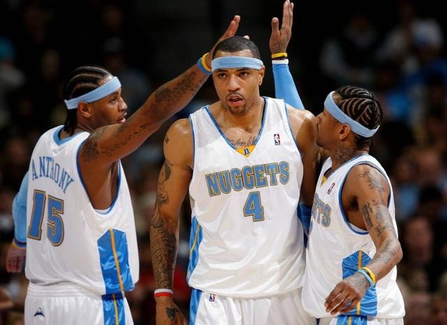 休赛期,一方面是掘金的大合同,一方面是基德的传球,马丁左右为难,就像他的纹身“患得患失”,犹豫了好久,27岁的小伙子大吼一声:“基德不是我老爸,离开他我也能活!”转身投奔丹佛高原,和甜瓜、坎比、内内组成了联盟厚重与速度并存,暴力美学最高潮的锋线!